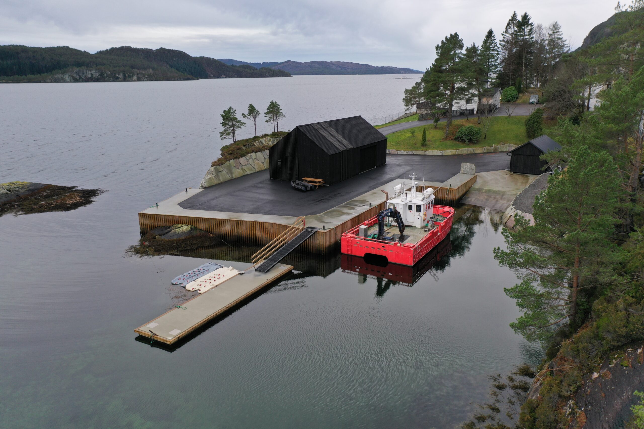 Videre er både kai og naust hevet fra kote +1,5 til kote +2 i forbindelse med utbedringen av kaifronten og dekke. Dette vil bidra til å sikre bygget mot eventuelle stormflo og stigende havnivå, noe som er essensielt i et kystnært miljø.